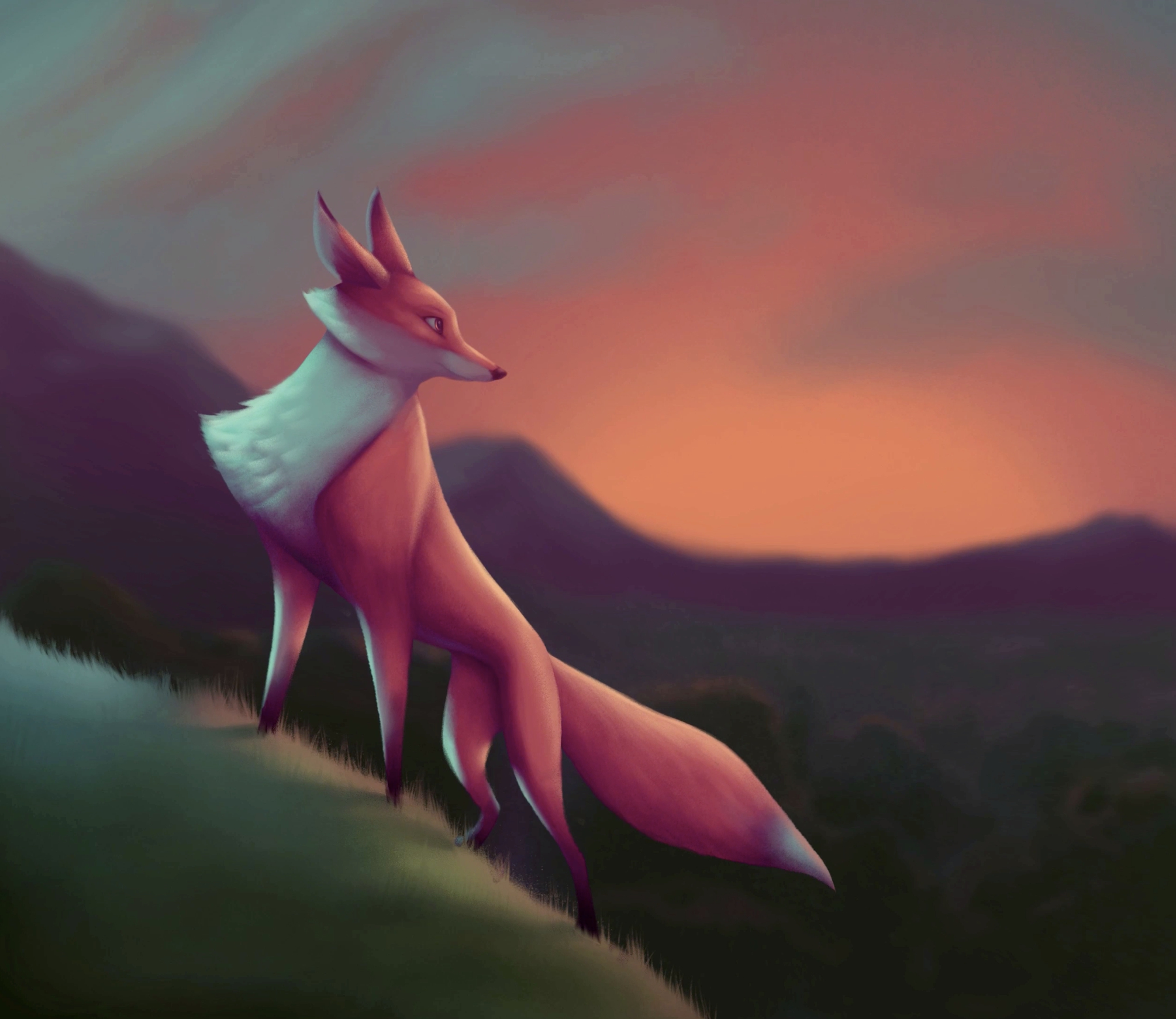 She stares contemplatively off to the horizon, the wind blowing through her fur. What is on her mind? This piece echoes a part of me that is peaceful and reflective. It is created in Procreate and animated with After Effects.